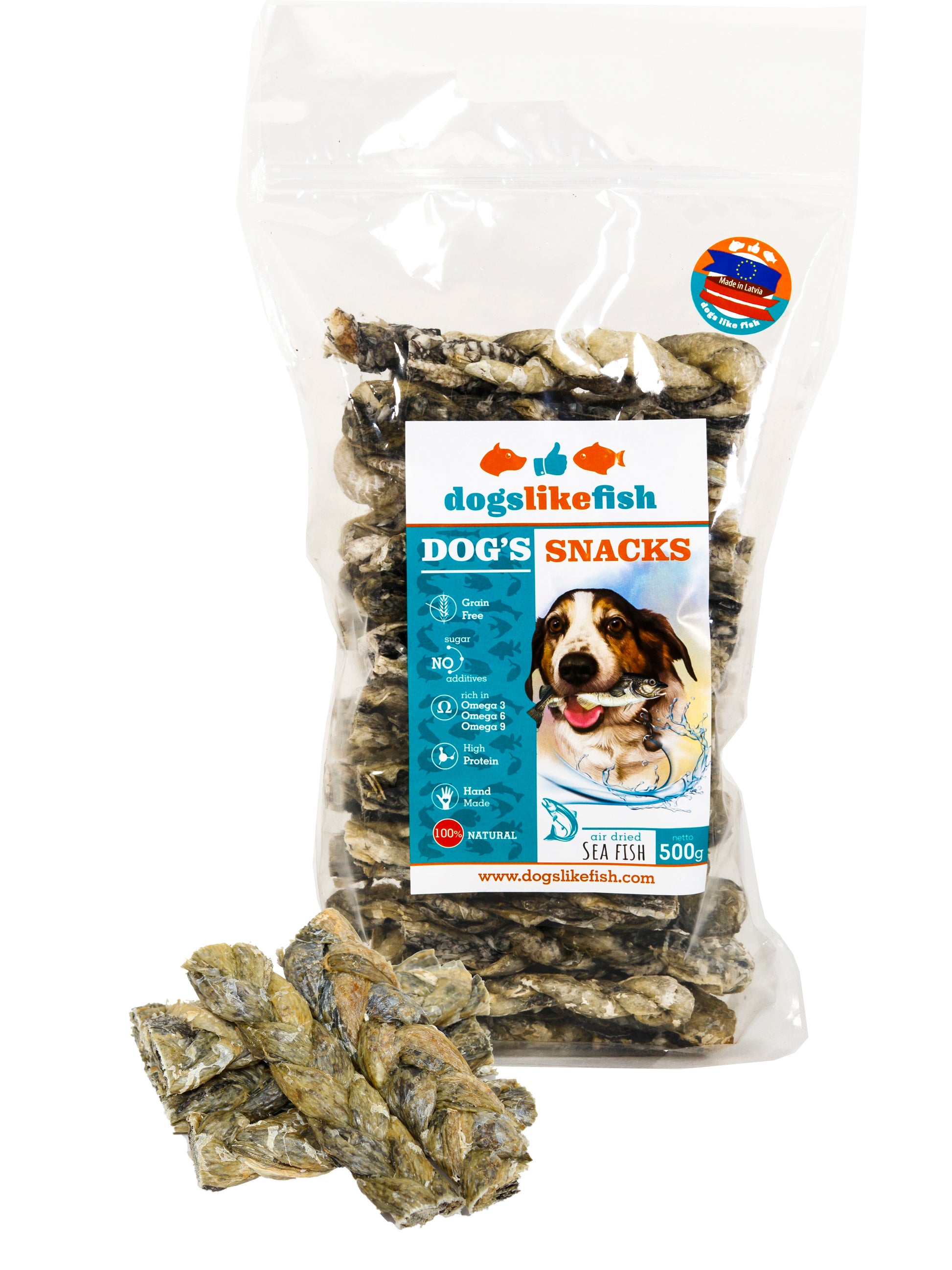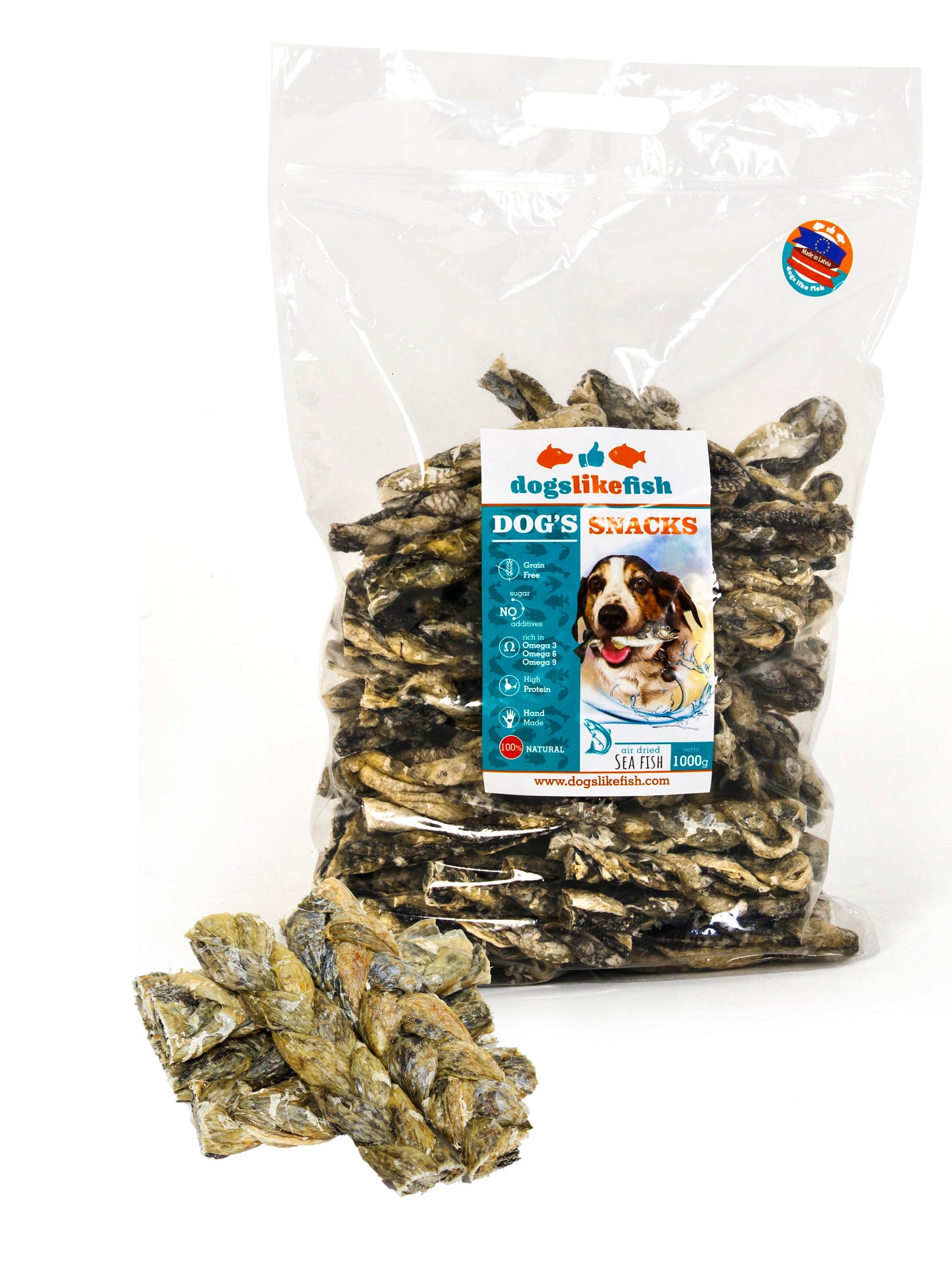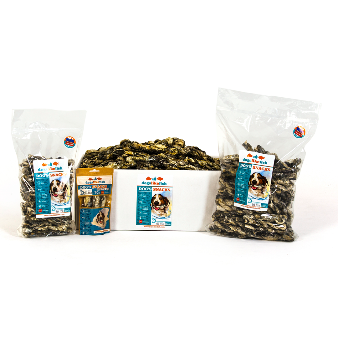 Our cod skin products are handmade, using a special drying regime that preserves 70–80% of the nutrients and aromas naturally present in fish. Cod skin treats are a wonderful combination of easily digestible proteins and essential amino acids that help your pet strengthen and clean their teeth while massaging the gums. In addition, dried cod skin treats are especially suitable for puppies during the teething period!